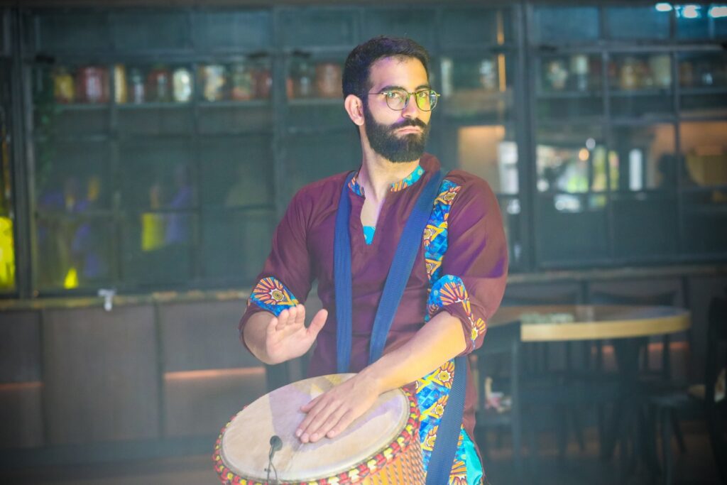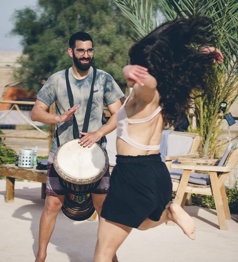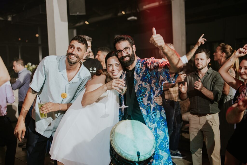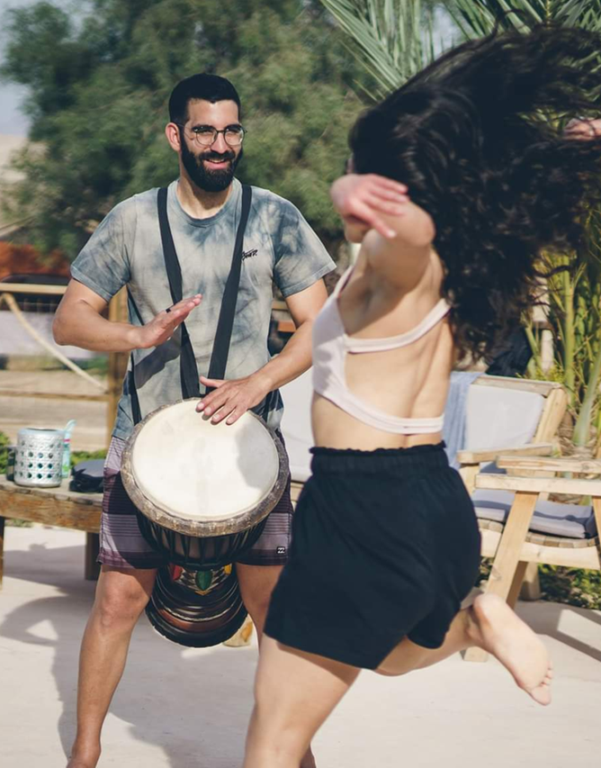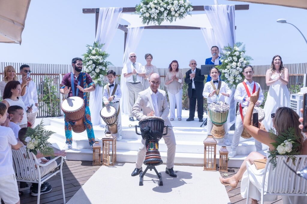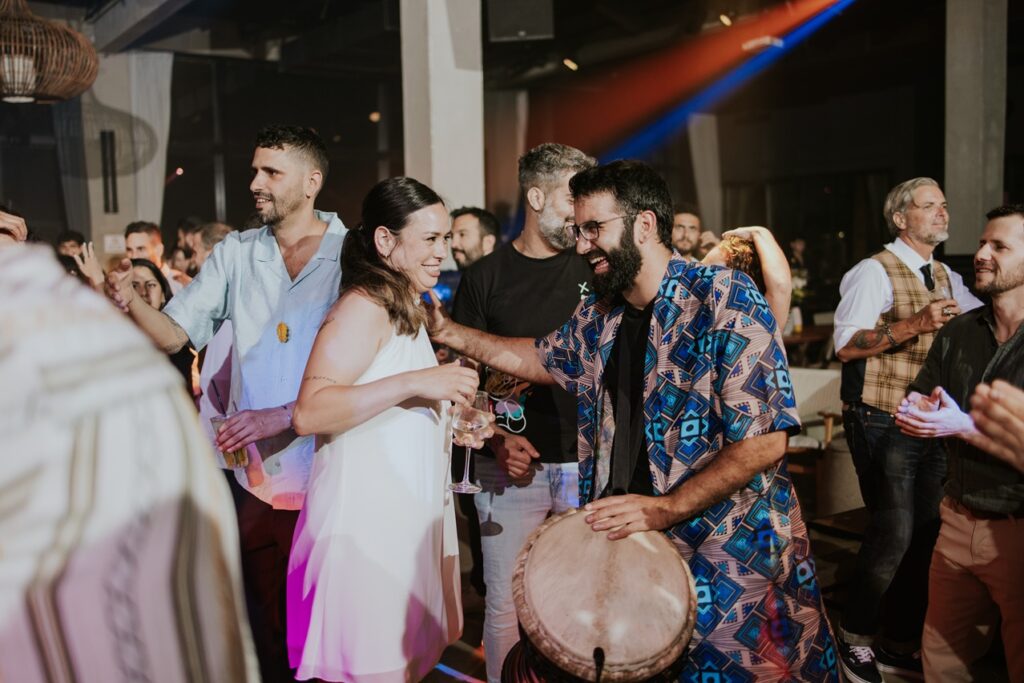 תיפוף חי על דג'מבה לצד הדיג'יי – שילוב שמדליק כל רחבה עם תחושה חיה ומחברת שלא תשאיר אף אורח אדיש.